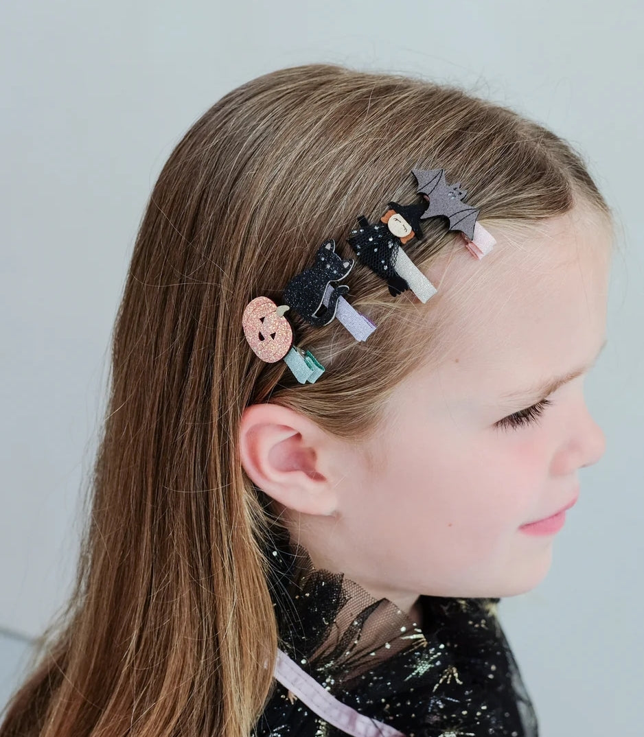 Perfectly sized for tiny tresses, these spooky and sparkly mini clips are just the right mix of frightful and delightful for little ones this Halloween!