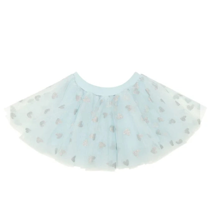 Sky blue tutu with silver glitter hearts